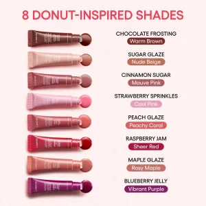 A nourishing, tinted Korean skincare lip serum with donut-inspired shades & flavors for visibly plump lips and a high shine finish.