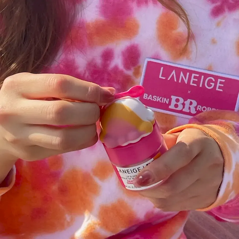 A limited-edition Lip Sleeping Mask topper shaped like a scoop of Baskin-Robbins™ Rainbow Sherbet ice cream. Stick it to the top of your lip mask jar to hold your matching spoon shaped applicator! Exclusively sold online & at the Laneige store at The Grove LA.